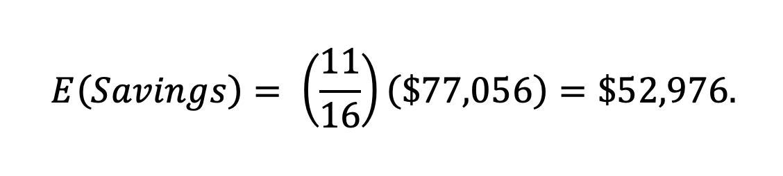 As noted above, my preferred estimate of the impact of the peak alert program is to reduce the coincident peak by 0.714 MWs. Conditional on a peak alert being called for the hour that CMLP’s coincident peak occurs, the value of the program, on average, is 0.714 x $107,921 or $77,056 in 2022. This assumes CMLP correctly identifies the ISO-NE peak hour each year. In actuality, CMLP calls an alert for an hour that turns out to be the ISO-NE peak hour for that year in eleven out of the sixteen years that the alert program has been in effect. The expected value of the peak alert program then is: